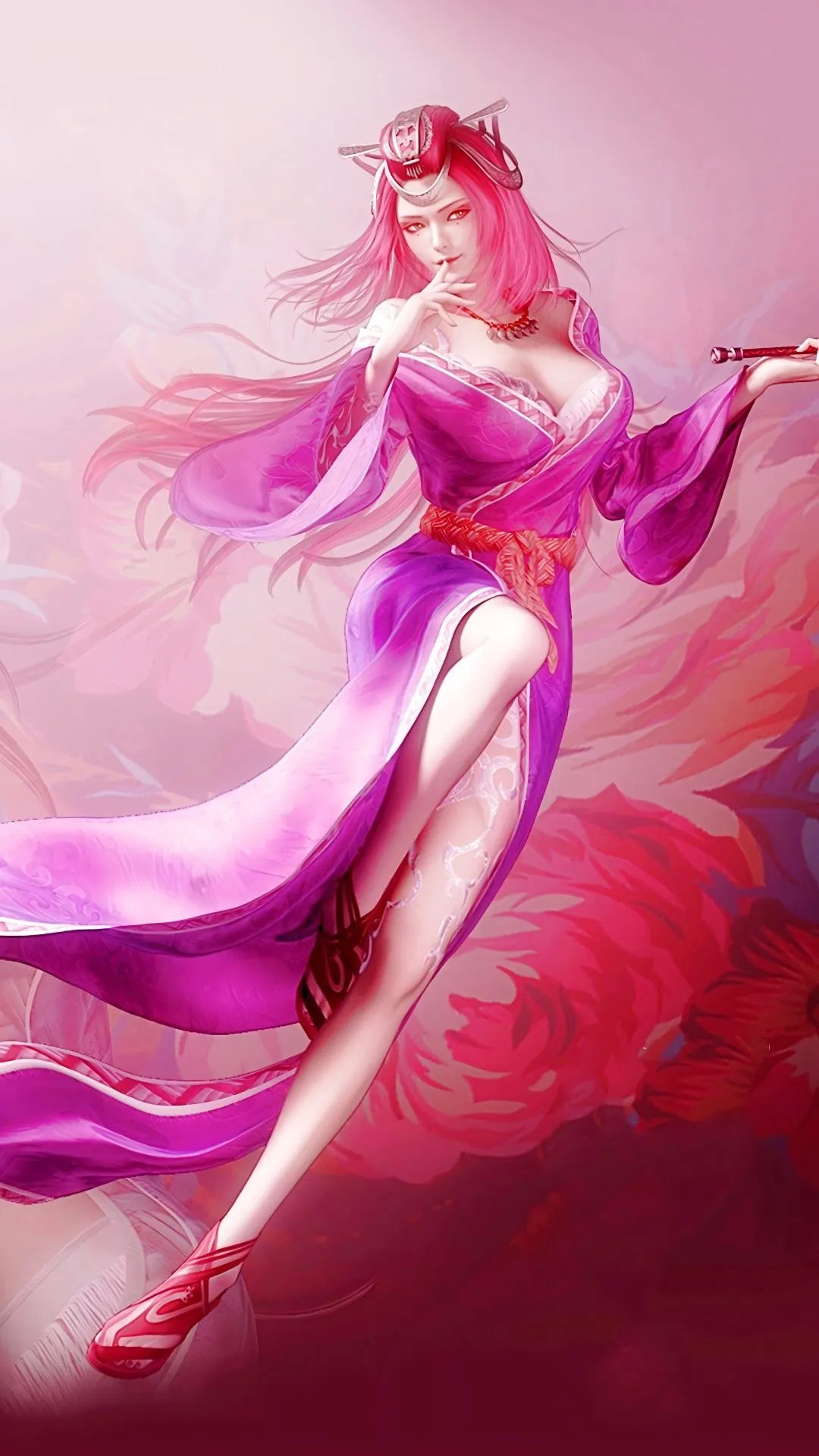 隨著粉色的高跟鞋履的邁動,那雙修長的美腿也一次次暴露在長裙之上。